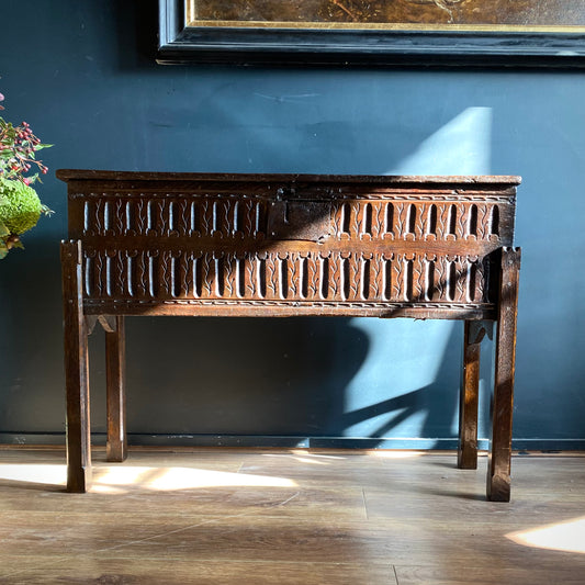 Elizabethan English Oak Coffer On Legs C.1590