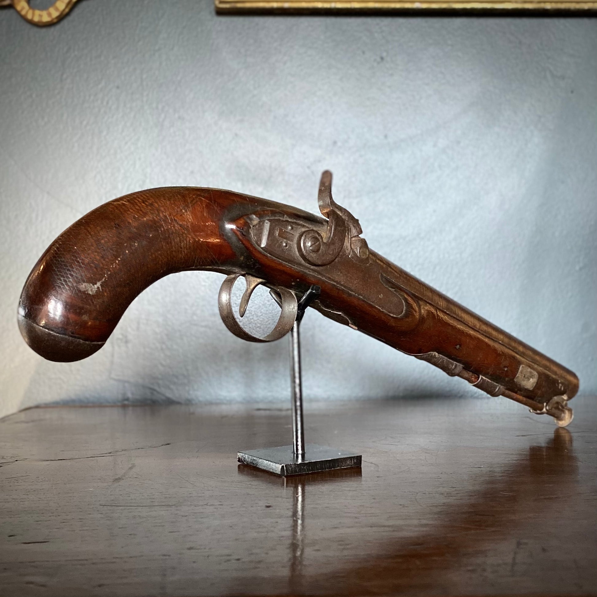 A beautiful example of an Officer's Pistol, featuring the 'E. Bond' maker's mark on the side of the barrel. The Bond family name was significant in gun making, with founder William Bond retiring his role in 1776 and Edward Bond being active between 1800 - 1830.